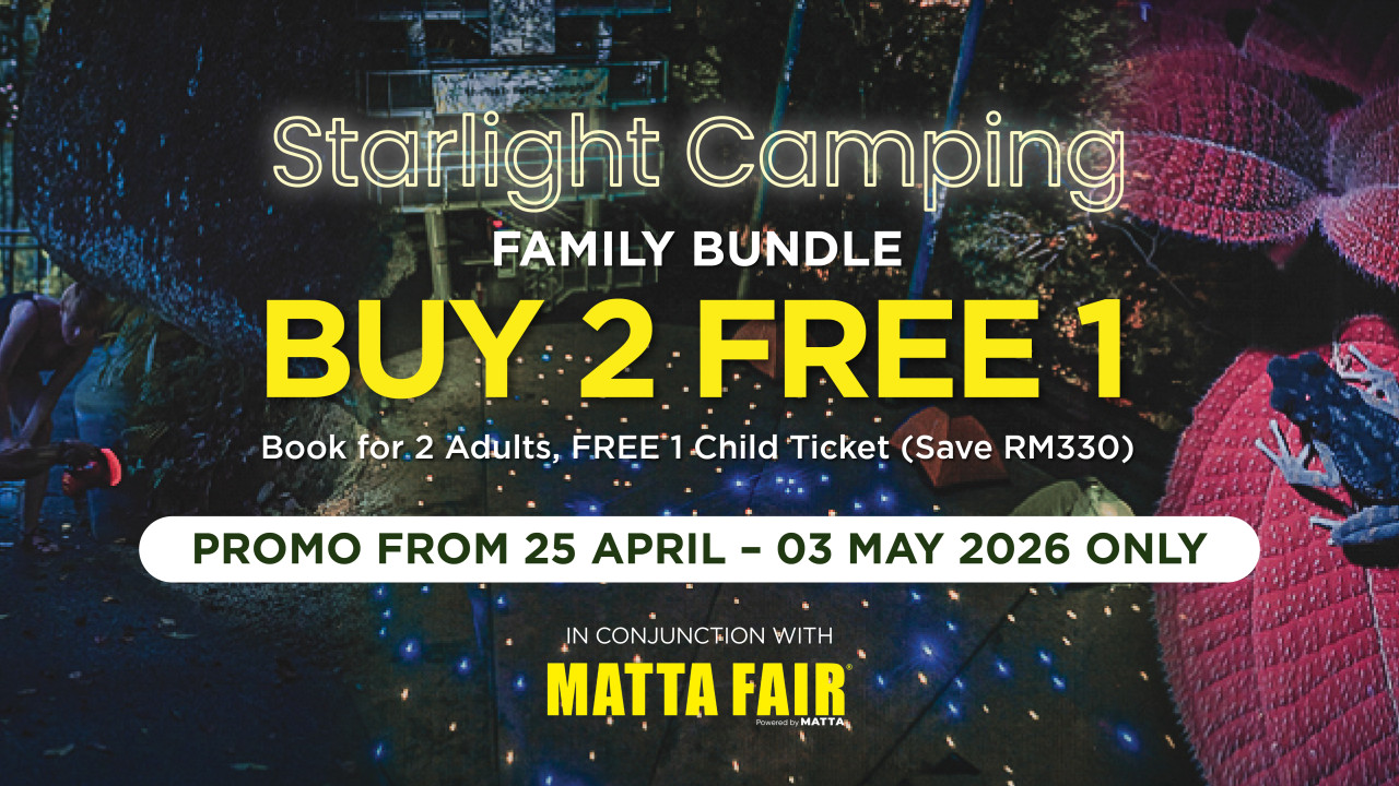 Escape to the UNESCO Penang Hill Biosphere Reserve for a 2D/1N Starlight Camping experience. Book for 2 adults and enjoy a free child ticket, inclusive of cozy tent accommodation, a guided walk, sunset and sunrise viewing, an After Dark Night Walk, and an 80m zipline finale. A complete rainforest getaway made easy for families.